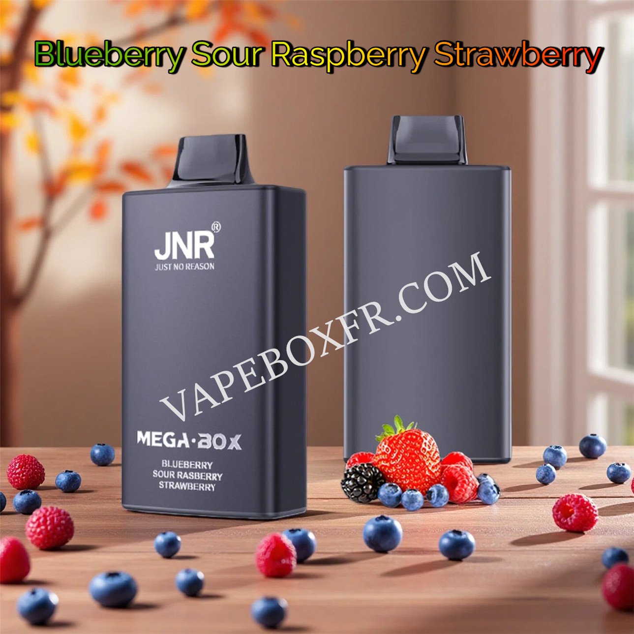 Imaginez savourer une boisson aux fruits rouges fraîchement préparée et bien fraîche sur une terrasse ensoleillée du Sud de la France. La JNR Mega Box 25000 Blueberry Sour Raspberry Strawberry recrée parfaitement cette sensation.